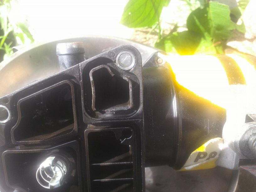 De fundatie van dit plastic oliekoelerhuis heeft nl een fragiele fundatie waar ook nog eens een pakking inzit.